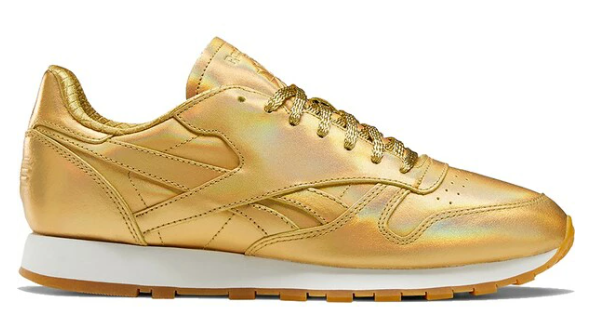 次に、2024年末から再び注目されているメタリック素材の復活です。Y2K(2000年代)ファッションの影響を受け、光沢のあるアイテムがブームとなっており、その延長線上にあるゴールドスニーカーが、まさにトレンドのど真ん中に。