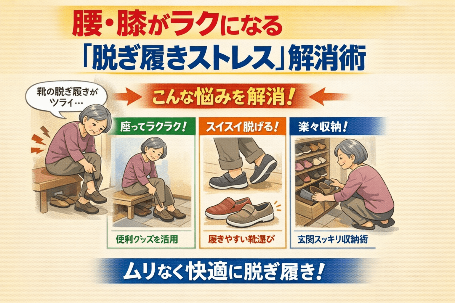 「靴ひも結ぶのが地味につらい」「玄関で前かがみになるだけで腰がピキッとくる」——これ、